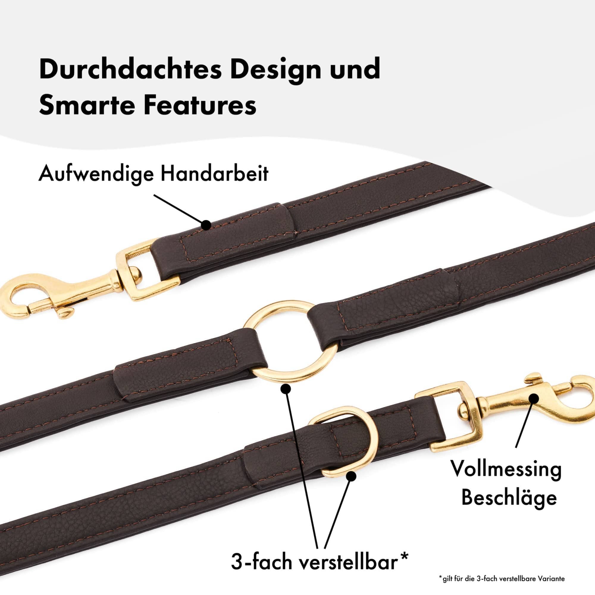William Walker Hochwertige Leder Hundeleine Earth (Braun) 3-fach verstellbar (Länge 2m) / Standardgröße (Breite 2cm | Große Karabiner | Halsband S-XL)William Walker Plain Bundle Test AV