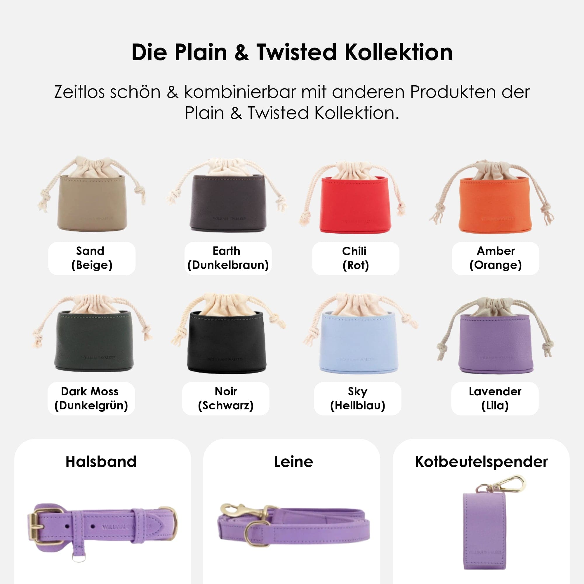 Hochwertiger Leckerlibeutel aus lilafarbenen Leder mit praktischen Anbringungsmöglichkeiten für stilvolles Hundetraining.
