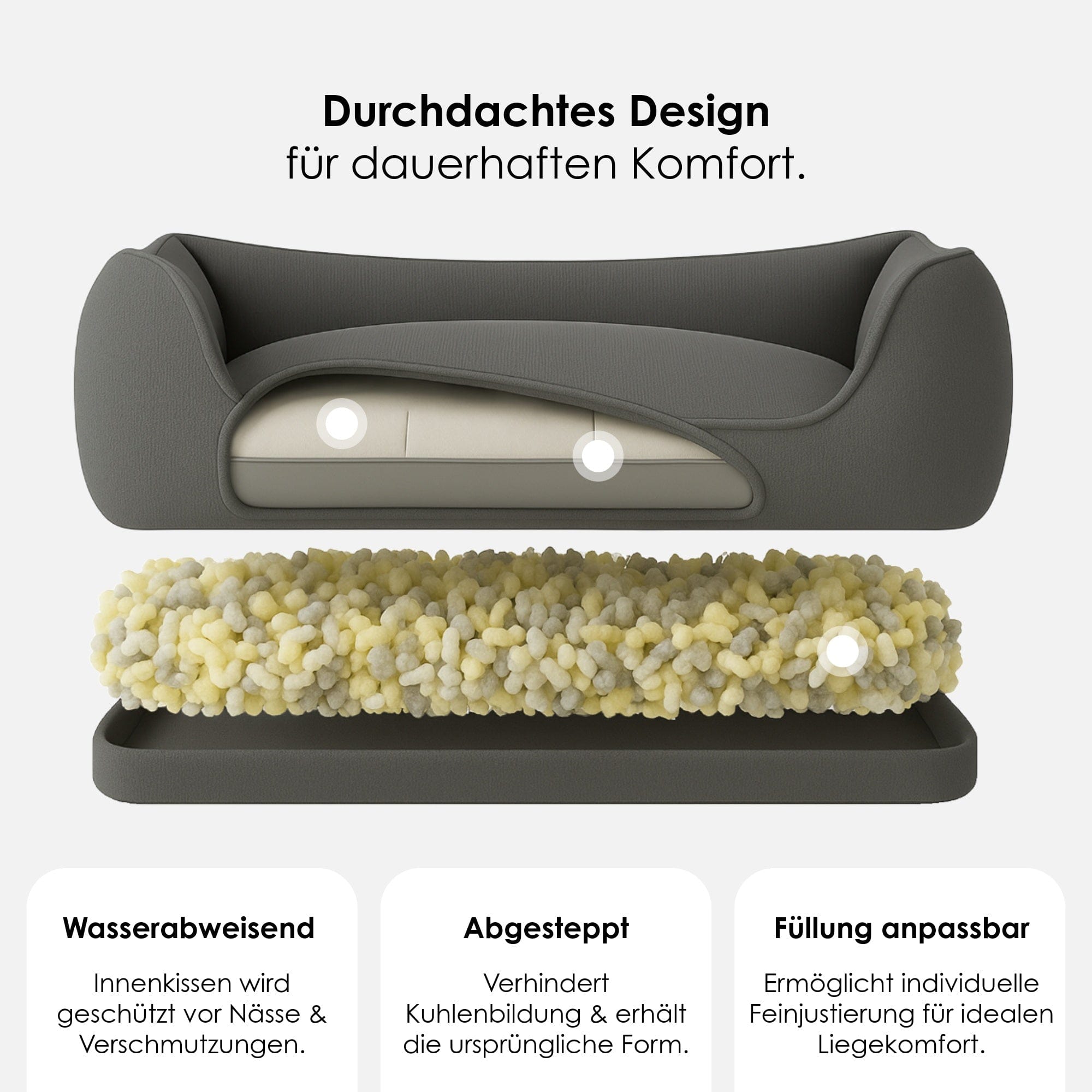 Orthopädisches Hundebett The Cloud in edlem Dunkelgrau. Perfekte Wahl für anspruchsvolle Hunde – maximaler Komfort und optimaler Schutz für Knochen und Gelenke durch Visco-Flocken-Füllung.