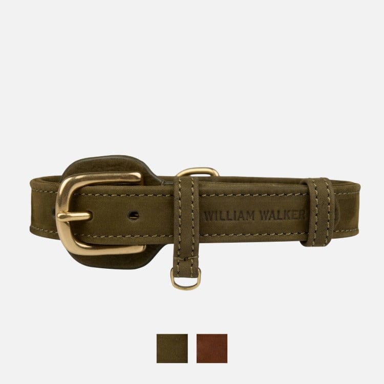 Un ejemplo es el collar de cuero para perros William Walker en verde bosque, que hace que cada paseo tenga una apariencia elegante.