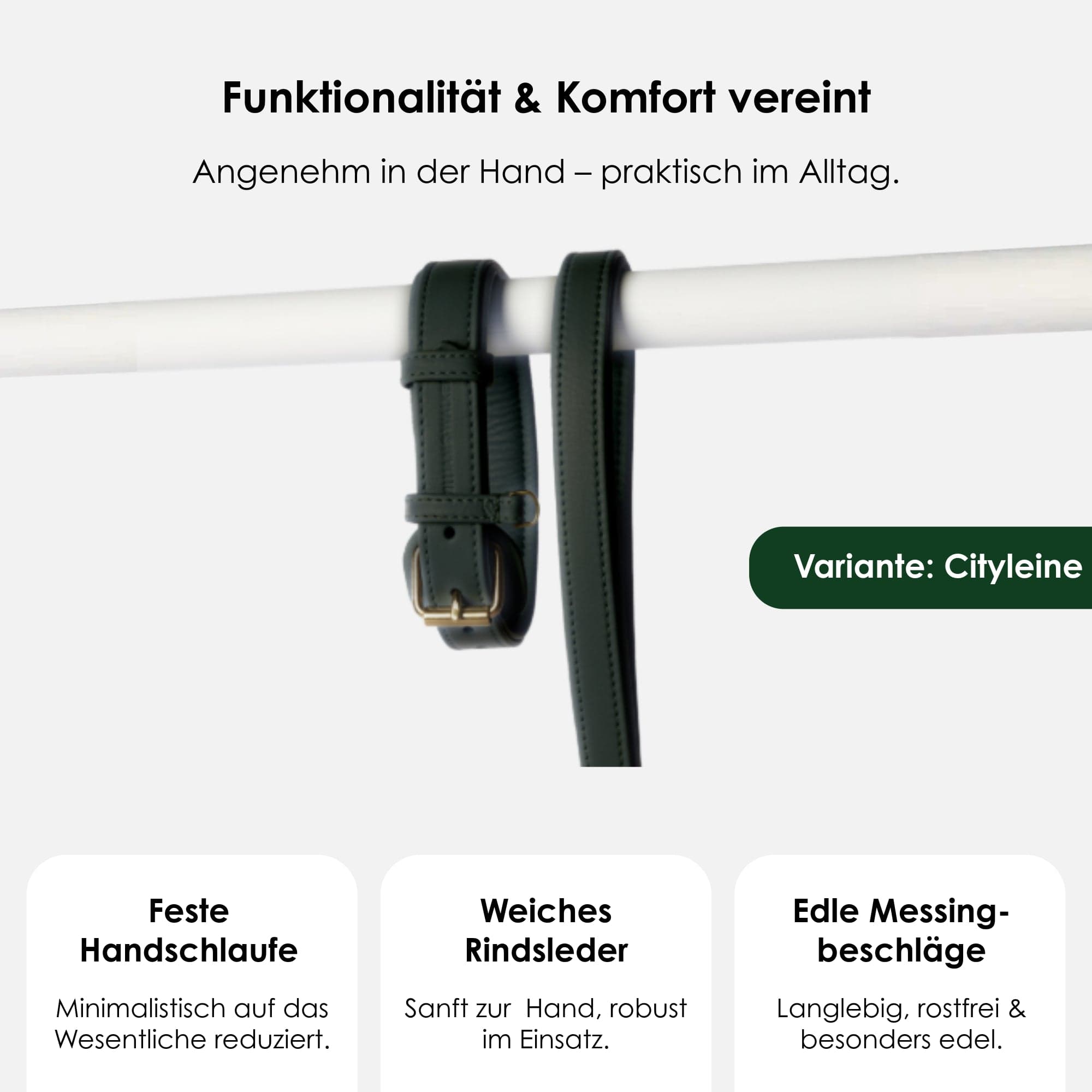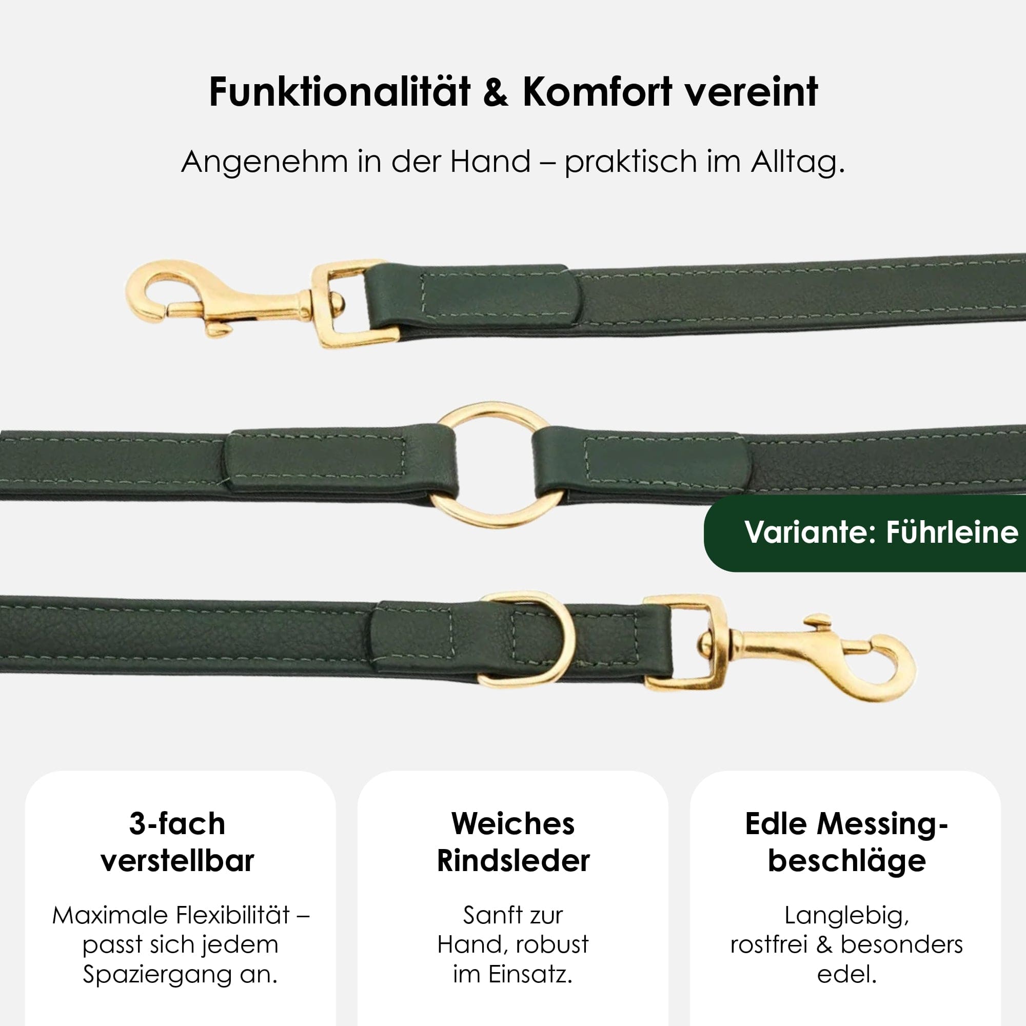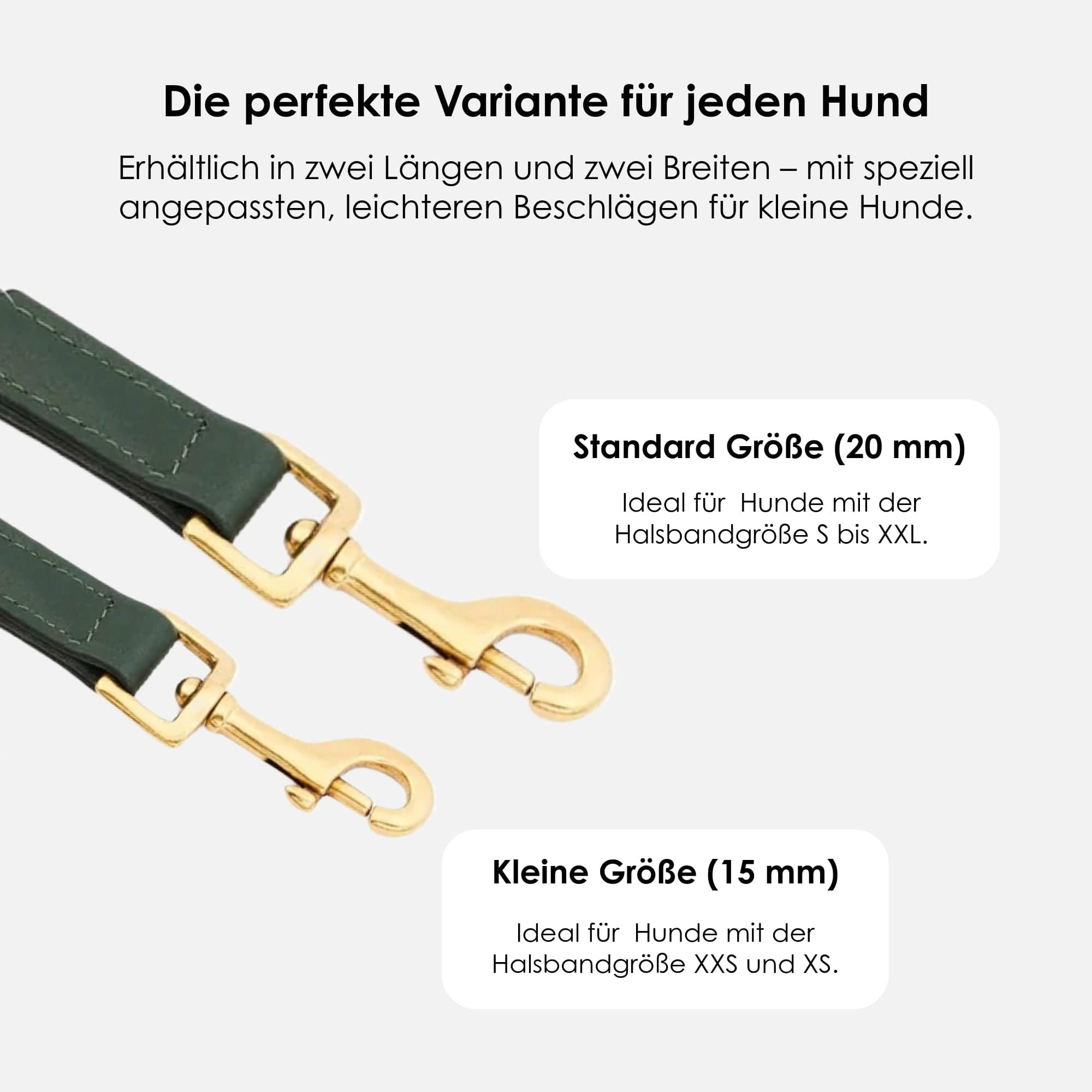 Correa de cuero Dark Moss de alta calidad en verde oscuro intenso: robusta, duradera y fácil de limpiar. Ideal para perros pequeños y grandes, ofrece la máxima comodidad y un diseño elegante sin concesiones.