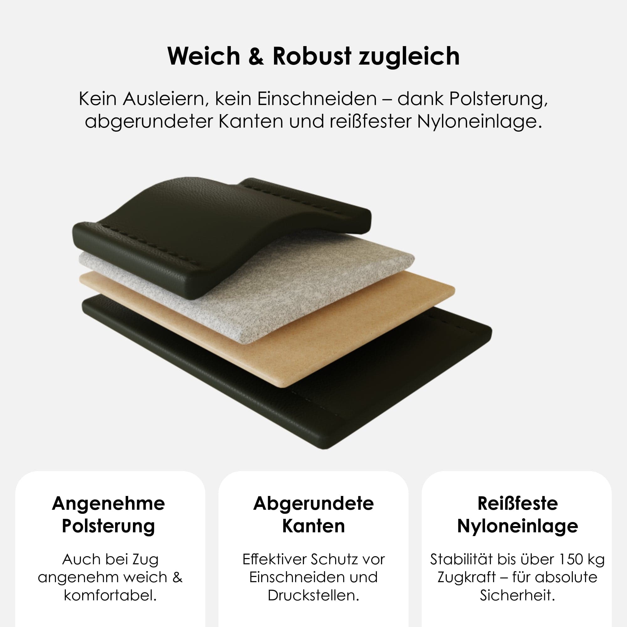 Nuestra correa City tiene una longitud fija de 1,5 metros y un lazo de mano fijo. Es aprox. 90 g más ligera que la versión ajustable de 3 vías y la elección correcta para paseos por la ciudad con una correa ajustada.