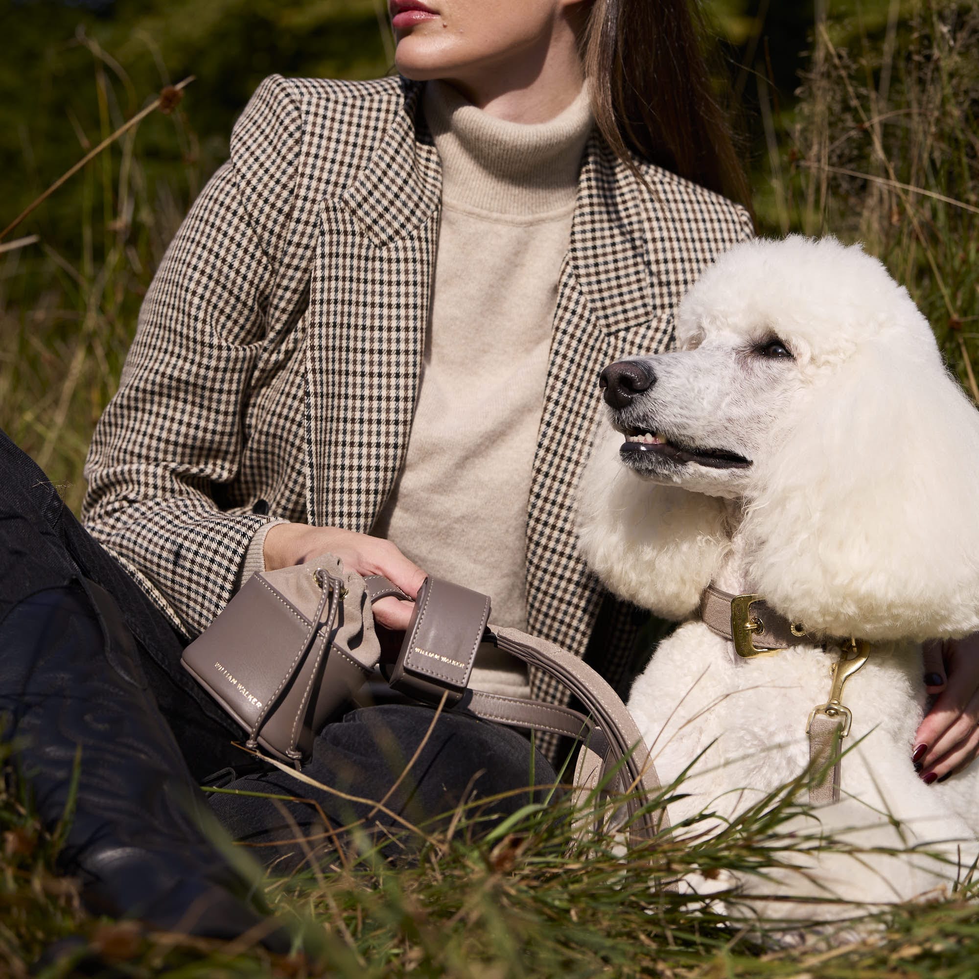 Hellblaue Hundeleine aus Leder mit hellblauem Hundehalsband in hellblau und LeckerlibeutelPudel mit Hundehalsband aus Leder Hundeleine Kotbeutelspender Leckerlibeutel von Williamwalker in beigeTwisted Set San Hundehalsband aus Leder in beige