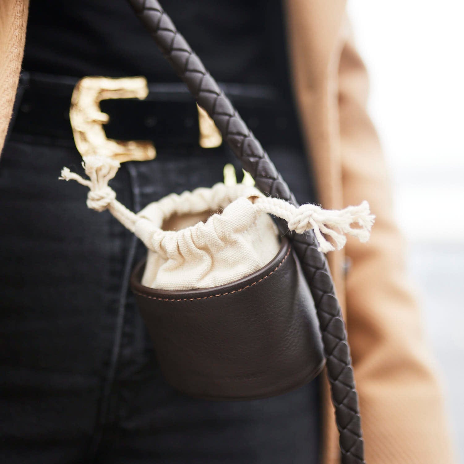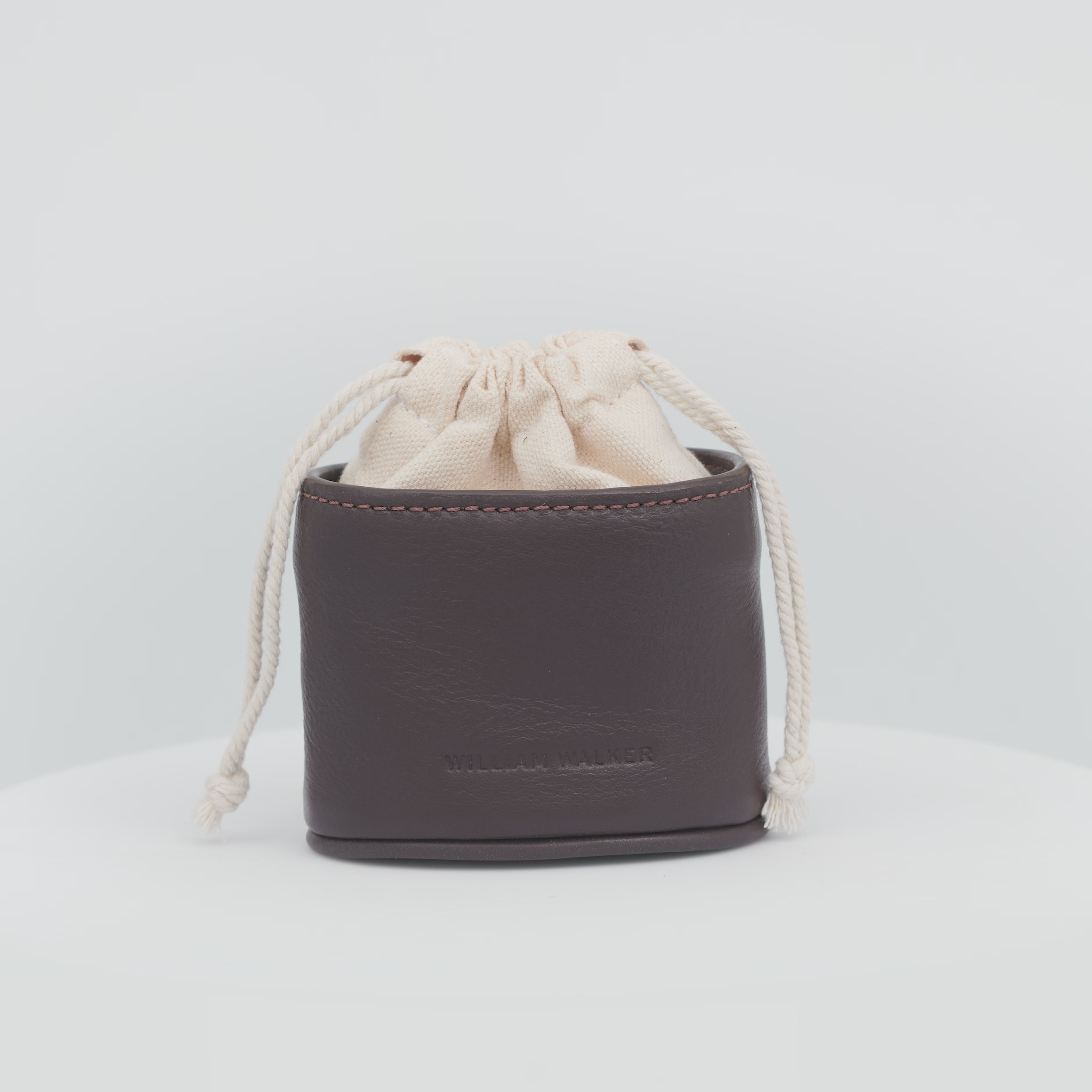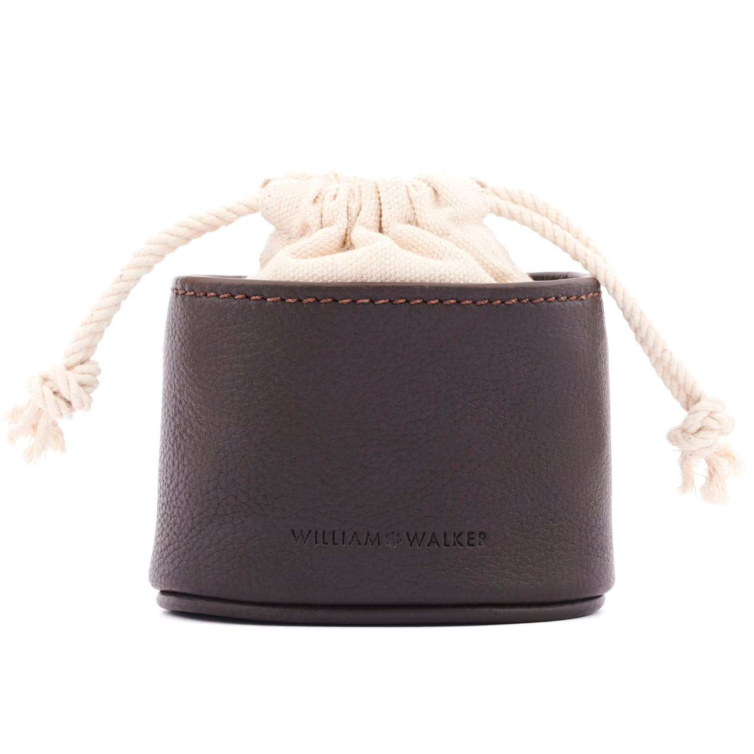 Hoogwaardige traktatietas van donkerbruin leer met praktische bevestigingsmogelijkheden voor stijlvolle hondentraining.
